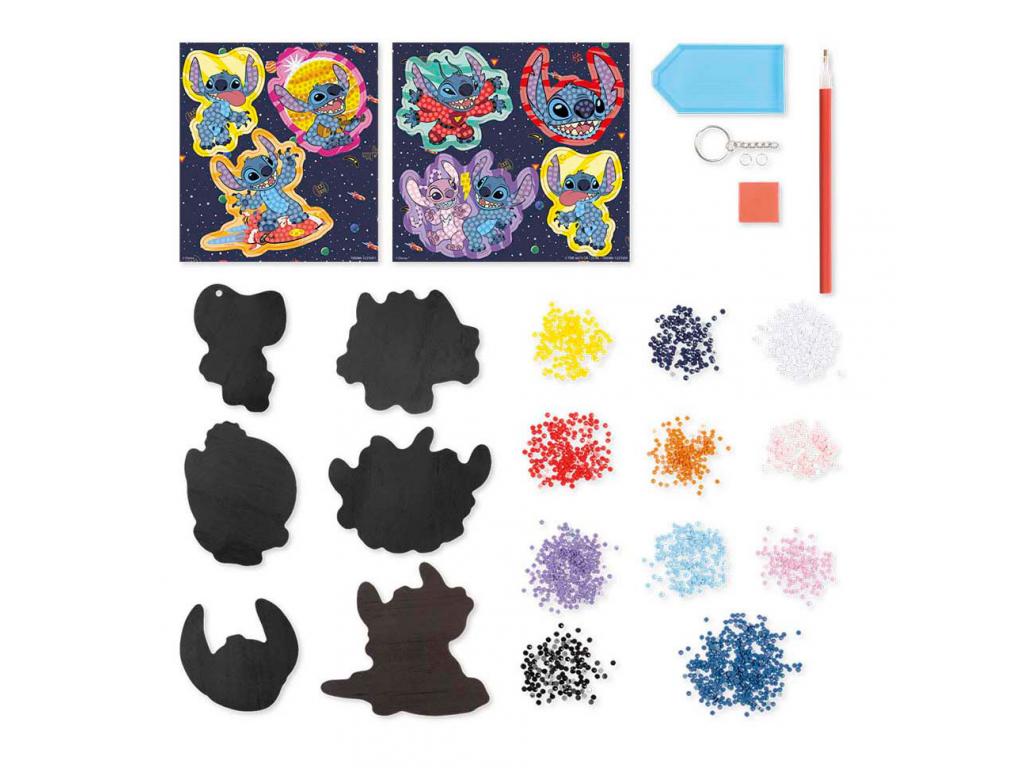 Stitch 3 az 1-ben kézműves készlet gyémántfestéssel, karkötő készítéssel és mágnesekkel. 5 éves kortól alkalmas.