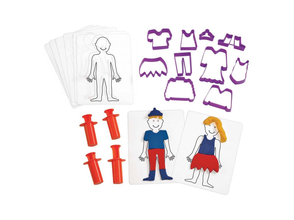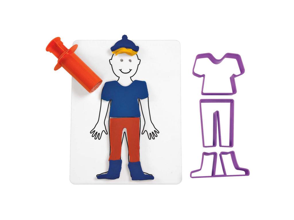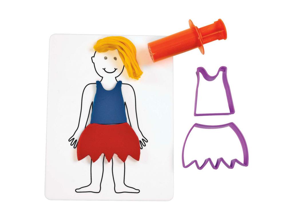Öltöztesd fel a saját barátodat! Öltöztesd fel a figurákat a strapabíró műanyag játékszőnyegen. 10 ruhakészítővel és 4 gyurmázó extrudóval gyermeked órákon át élvezheti a gyurmázás érzékszervi élményét! (Gyurma nem tartozék).