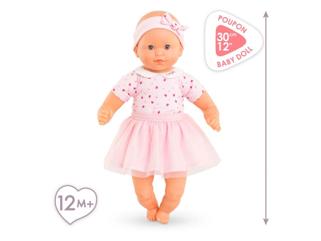 Mon Elragadó Petit Poupon Coeurs baba. Jellemzők Baba tutuval Vinyl arc és végtagok, finom vanília illattal 12 hónaposnál idősebb gyermekek számára alkalmas 30 cm magas