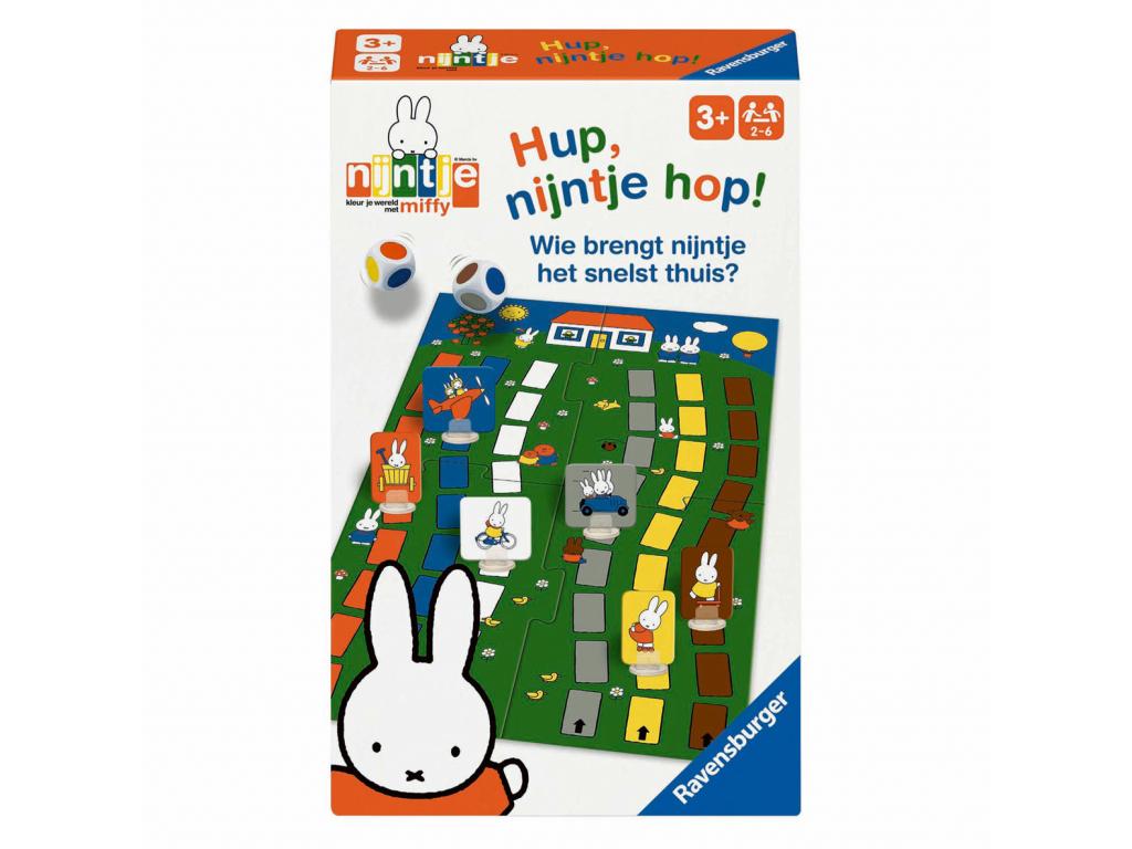 Minden alkalommal, amikor a színes kocka elgurul, hallatszik a Hop, Miffy Hop kiáltás! Miffy ugyanis minél hamarabb haza szeretne jutni. Ez többféleképpen is lehetséges... autóval, repülővel, kerékpárral, vagy talán a rollerrel lehet a leggyorsabban menni?