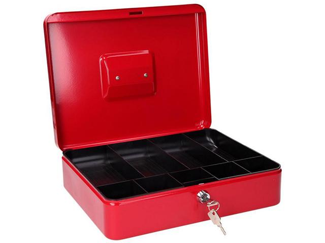 Szerezz be egy piros színű, kiváló minőségű fémből készült pénzkazettát, amellyel biztonságban tudhatod a benne tartott pénzt akár az irodában, akár az otthoni háztartásban egyaránt. A benne található műanyag pénztároló tálca segítségével szétválogathatod a papír pénzeket és aprópénzeket. A pénzkazetta kulccsal zárható és a masszív fém anyagának köszönhetően csak az férhet hozzá a beltartalmához, akinek kulcsa van hozzá. A pénzkazetta egy hordozófüllel is rendelkezik a könnyű szállítás érdekében.