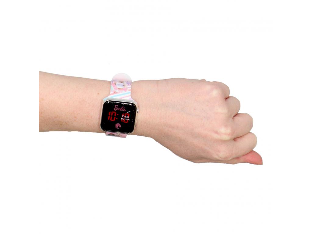 Adjon egy kis stílust és csillogást az időméréshez a Barbie LED órával! Ez a gyönyörű óra ötvözi a funkcionalitást Barbie időtlen varázsával, így minden Barbie-rajongó számára elengedhetetlen kiegészítő. Négyzet alakú kijelzőjével és lekerekített sarkaival ez az óra modern megjelenést kölcsönöz. A szíj különböző Barbie-képekkel van díszítve, mindegyik egyedi dizájnnal és pasztell színű grafikus háttérrel. Ez a Barbie LED óra nem csak stílusos kiegészítő, hanem praktikus társ is az idő méréséhez. Ideális fiatal divatrajongóknak, akik szeretnek feltűnni és megmutatni Barbie iránti szeretetüket. Hadd ragyogjon a személyiséged a Barbie LED-órán. Akár játszani mész a barátaiddal, akár divatbemutatóra, ez az óra minden alkalomhoz játékos és divatos hangulatot kölcsönöz.