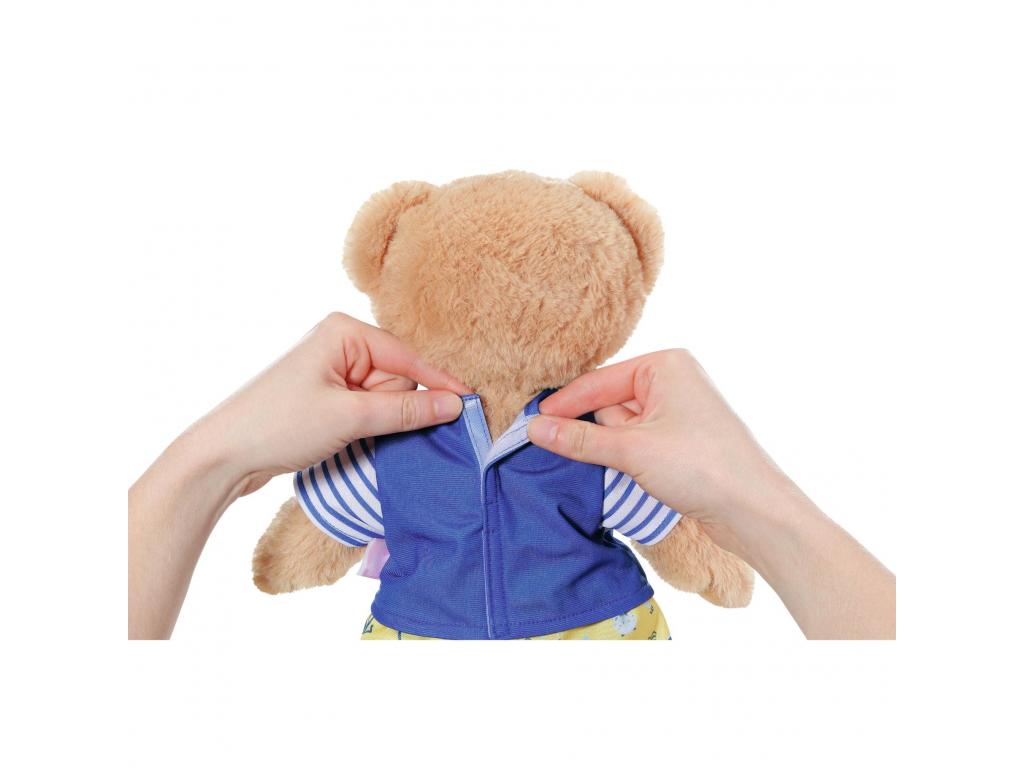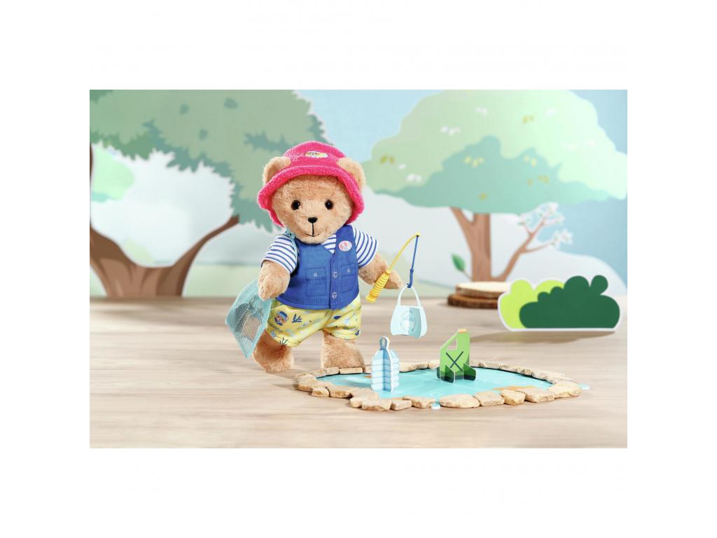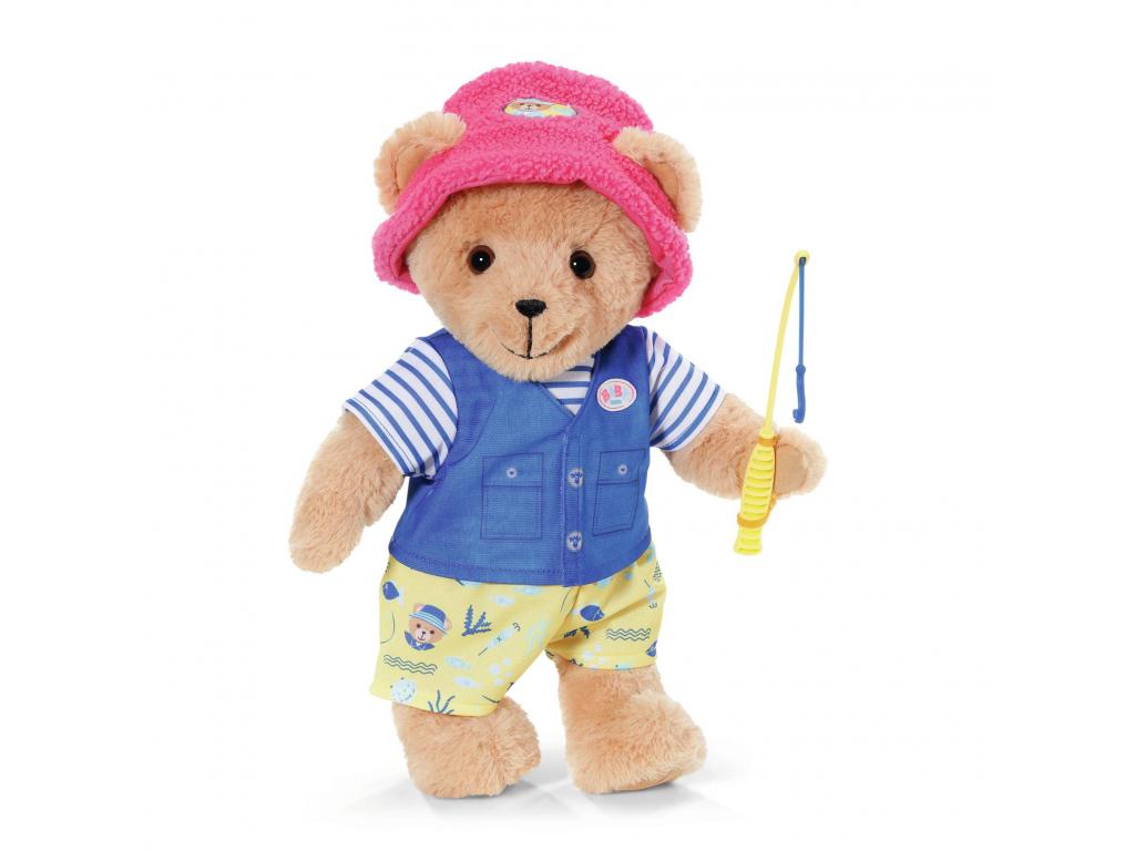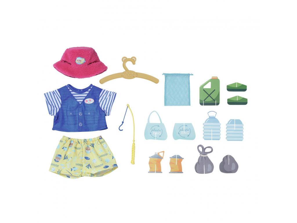 Ebben a stílusos halászruhában a BABY Born macid nemcsak feltűnik, de jól is felszerelt: az aranyos póló, kardigán, nadrág és bolyhos, rózsaszín halászsapka mellett a szett tartalmaz egy horgászbotot is, amellyel mindenféle, a természetben nem helyénvaló tárgyat ki lehet fogni: szemeteszsákokat, kannákat, régi dobozokat BABY born maci mindet kihalásza a tóból a tisztább környezet érdekében. De nem csak a medve tehet a környezetért: BABY born babád is felveheti a 43 cm-es ruhát.