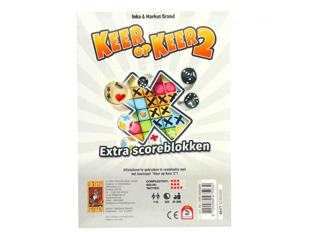 Kiegészítő pontszámlapok a Keer op Keer játék rajongói számára. A csomagban két Level 1 pontszámlap található, amelyek megegyeznek az alapjátékban találhatókkal. Angol/holland nyelvű.