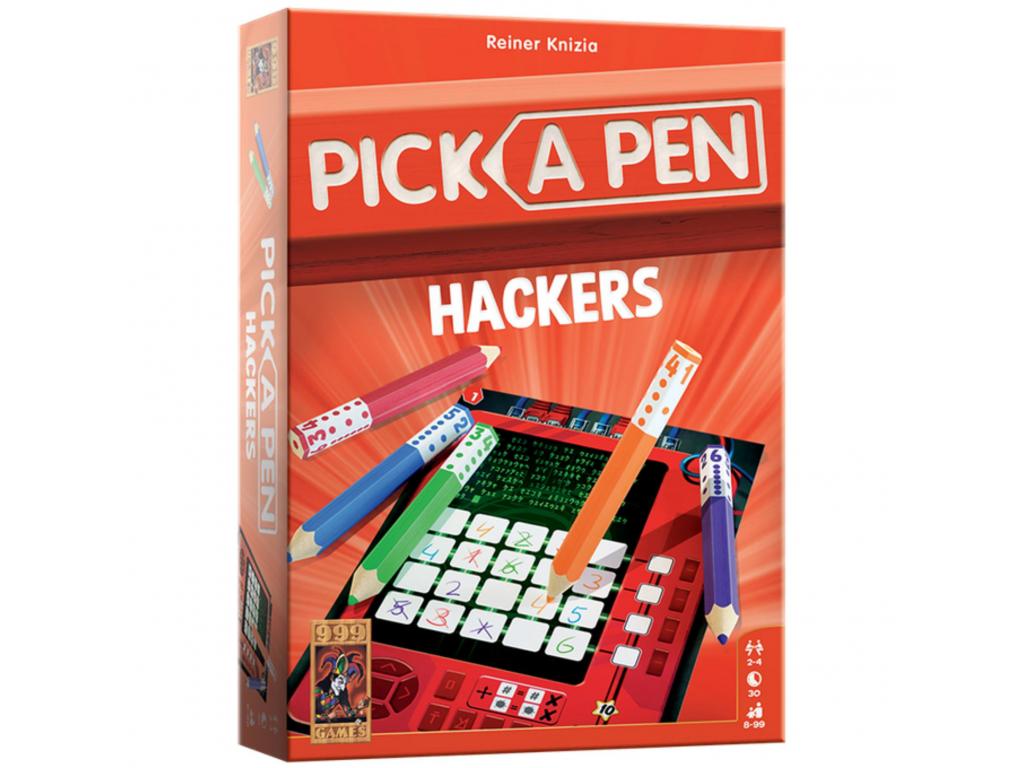 A Pick a Pen: Hackers egy stratégiai kockajáték a 999 Games-től, amelyet Reiner Knizia tervezett. A játék 2-4 játékos számára alkalmas, 8 éves kortól, és körülbelül 30 percig tart. Ötvözi a taktikát és a rejtvényeket, három különböző szintű ponttáblával. Angol/hollland nyelvű szabályokkal.