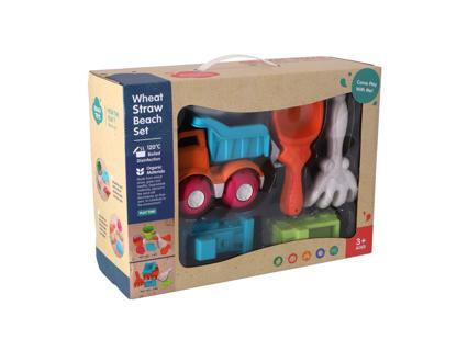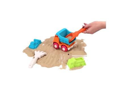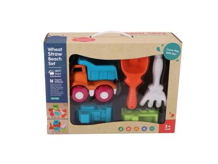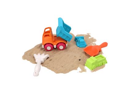 5 részes bioplasztik strandkészlet. 5 részes játék készlet a strandra vagy a homokozóba. A készlet egy billencsautóból, 2 homokformából (buldózer és teherautó), egy lapátból és egy gereblyéből áll. Színes bioplasztikból készült. 3 éves kortól alkalmas.