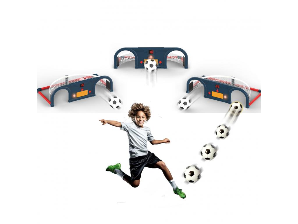 A Soccer Roundabout egy szórakoztató és interaktív focijáték fiúknak, lányoknak és felnőtteknek! Ez a focijáték segít javítani a pontosságot, a sebességet és a reflexeket szórakoztató módon. A készlet egy fociedzőből és egy hablabdából áll. A feladat az, hogy a labdát a bal oldali lyukon, a jobb oldali lyukon vagy a középső érzékelőn keresztül rúgd, a LED nyíl jelzi, hova kell lőnöd, hogy pontot szerezz. Az edzőn láthatod a visszaszámláló másodperceket. Egy körre mindig 60 másodperc áll rendelkezésre, és az nyer, aki a legtöbb pontot gyűjti! Ez a fociedző lelkes focisták számára ideális baráti versenyek szervezéséhez, de beltéren vagy kültéren, sík felületen is gyakorolhat vele. Fejleszd foci tudásodat a Soccer Roundabout segítségével! A kapu mérete: 80 x 42 x 23 cm. Korhatár: 6 év felett.
