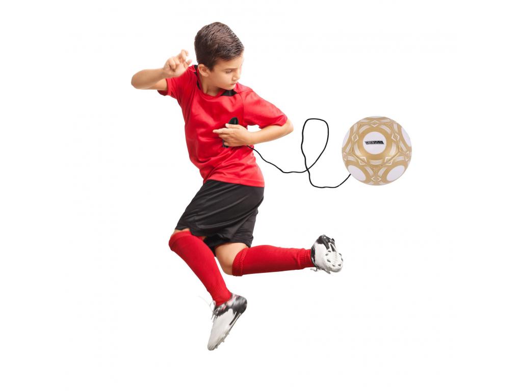 A futballtrükkök megtanulása még soha nem volt ilyen egyszerű. Ezzel a praktikus zsinórral ellátott labdával pillanatok alatt elsajátíthatod a legmenőbb trükköket. Mivel a labdát mindig magad közelében tarthatod, gyorsabban és hatékonyabban gyakorolhatsz. A zsinórt fokozatosan hosszabbítsd meg, hogy nehezebbé tedd a feladatot.