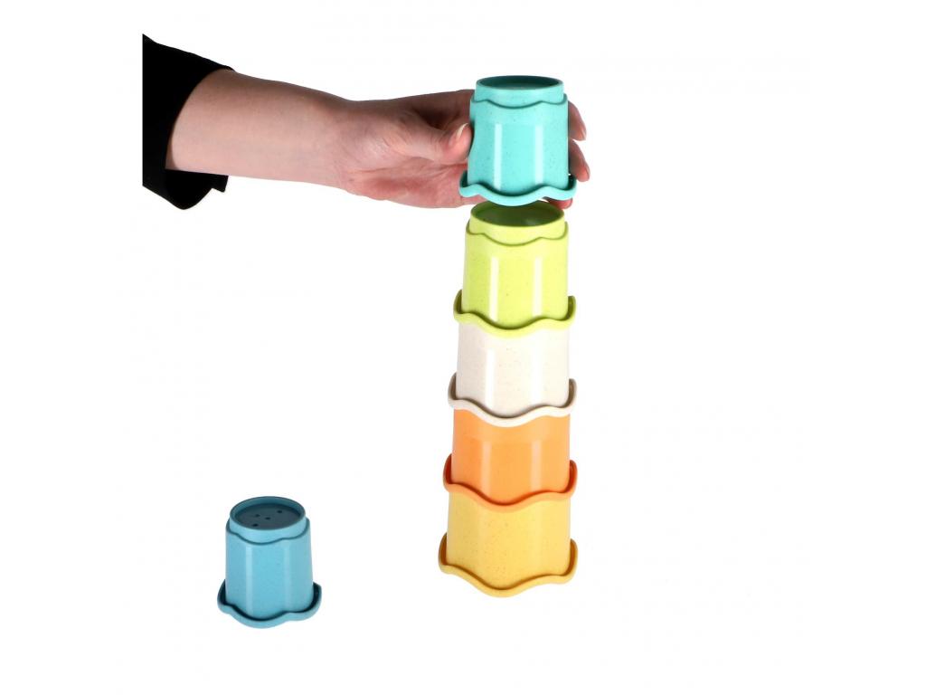 Építsen magas tornyot ezekkel a színes bioplasztikból készült toronypoharakkal! Ezzel a 7 pohárral a gyerekek játék közben edzhetik kéz-szem koordinációjukat! 18 hónapos kortól alkalmas.