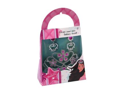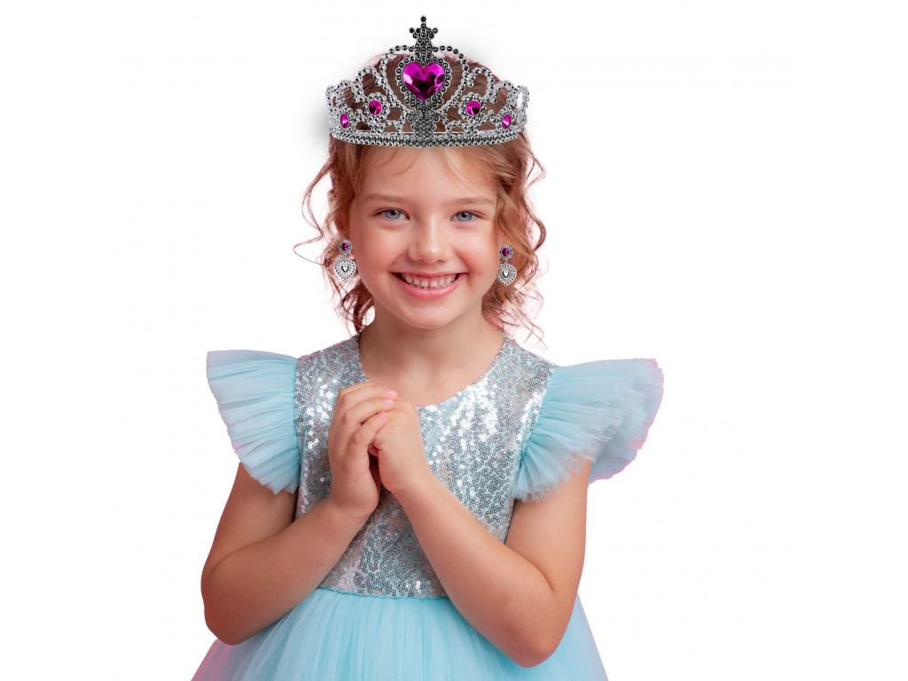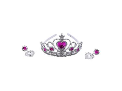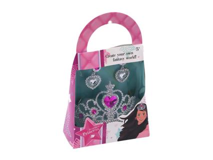 Játszd el egy igazi hercegnőt ezzel a gyönyörű kiegészítő szettel, amely egy tiarából és fülbevalókból áll. A szív alakú fülbevalók sötétrózsaszín részletekkel rendelkeznek, a tiara pedig hozzáillő csillogó és rózsaszín megjelenésű. Több változat létezik, előre nem lehet meghatározni, hogy melyiket kapod. A szett 3 éves kortól alkalmas.