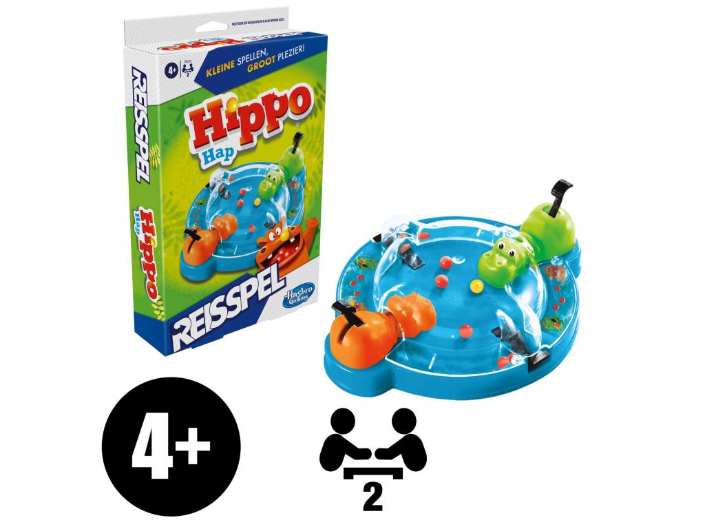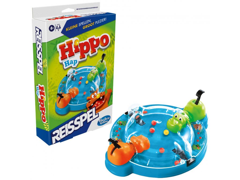A Hasbro Gaming Hippo Hap utazó játék, a klasszikus Hippo Hap játék kompakt változata. Ez a változat 2 éhes vízilóval rendelkezik 4 helyett. Beépített tárolóhellyel, hogy minden alkatrész egy helyen maradjon.