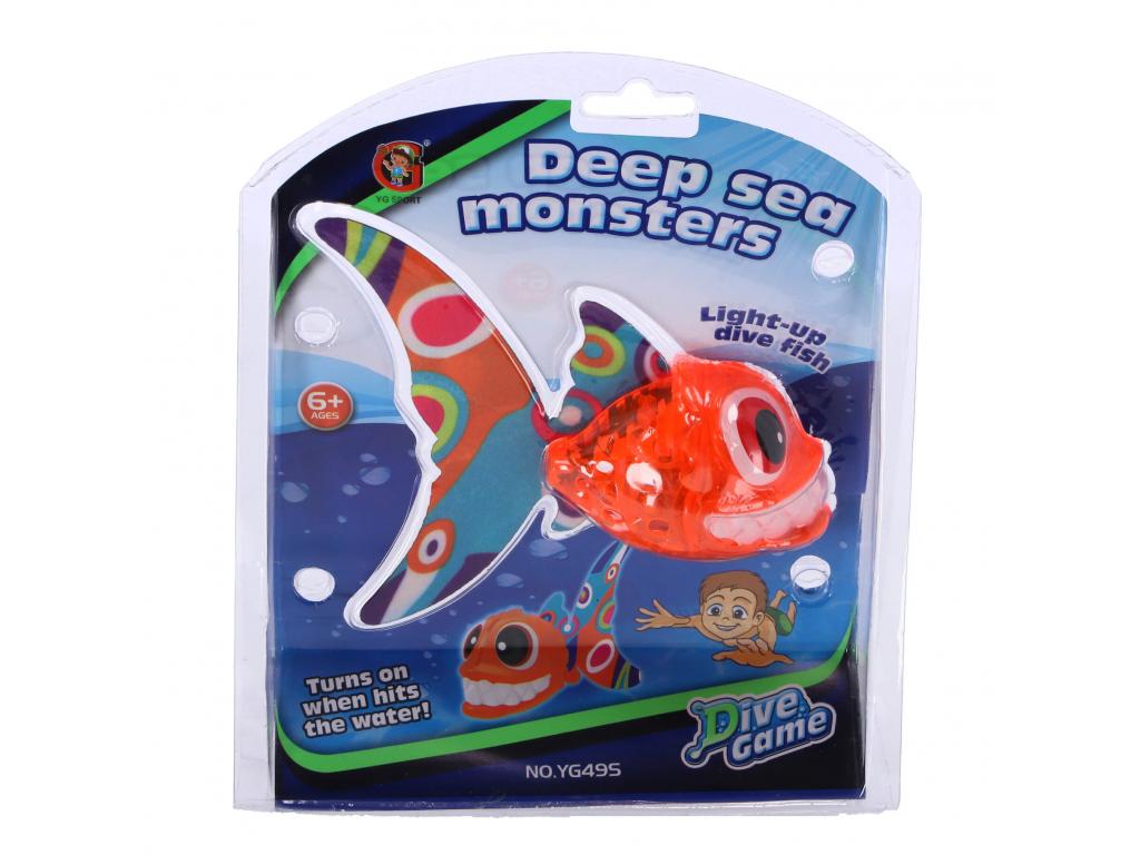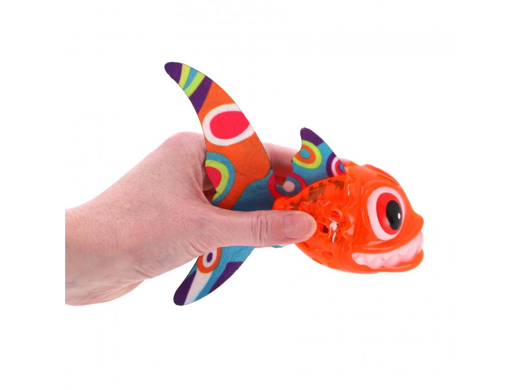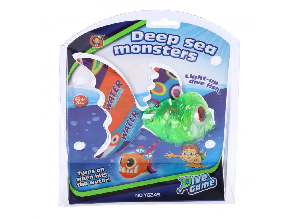 Búvárhal nagy fogakkal és fénnyel. Víz alatti szórakozás ezzel a fénnyel ellátott búvárhallal. A piranha-szerű hal gyönyörű farkával úszik a víz alatt, sikerül elkapnod? 3xAG13 elemmel működik (mellékelve). 6 éves kortól alkalmas. Többféle változatban kapható, szállítás véletlenszerűen. Az ár 1 db termékre vonatkozik.