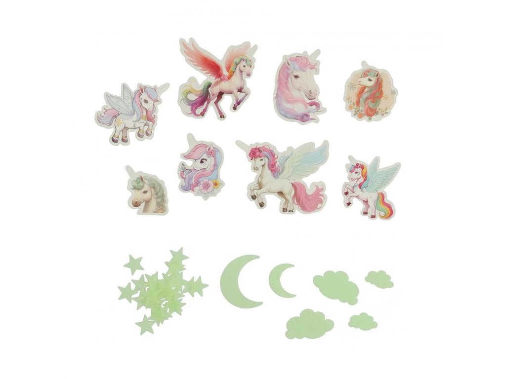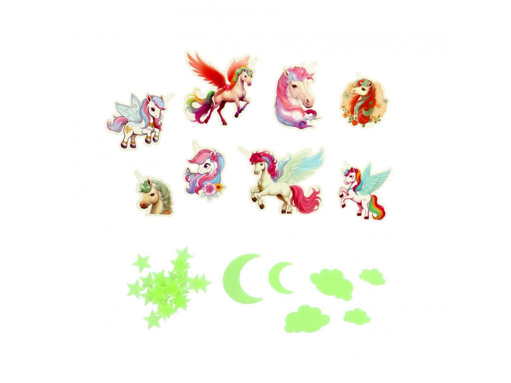 Készíts izgalmas szoba vagy ruha dekorációt ezekkel a 3D-s unikornis matricákkal, melyek sötétben foszforeszkálnak.