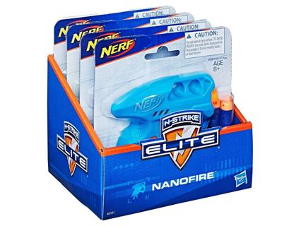 Nerf Nano Fire. Kicsi Nerf blaster puska 3 db habszivacs dárdával. 2 különböző színben kapható. 8 éves kortól alkalmas. Többféle változatban kapható, szállítás véletlenszerűen. Az ár 1 db termékre vonatkozik.
