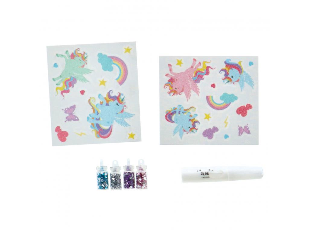Tartalom: 2 lap csillogó tetoválás 4 tégely 4 különböző színű csillogó kővel 1 tubus ragasztó
