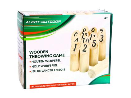 Az Alert fa dobójáték a finn Mölkky kuglizáson alapul. A kültéri játékot 2 vagy több személy játszhatja, 2 csapatra osztva. Helyezze a fa kuglikat egymás mellé egy füves területre vagy csempére, és próbálja meg eldobni őket. Annyi pontot kap, amennyi a kuglin szerepel. 6 éves és idősebb gyermekek számára alkalmas.