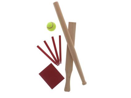 Alert fából készült labda ütőjáték, a cricket-hez, szoftballhoz, illetve a baseball-hoz hasonló játékszabályokkal, praktikus tárolóhálóval, 1 fa ütővel, 1 fa ütődeszkával, 4 oszloppal, 1 bázissal, 1 labdával és egy tárolóhálóval rendelkezik. 5 éves kortól alkalmas.