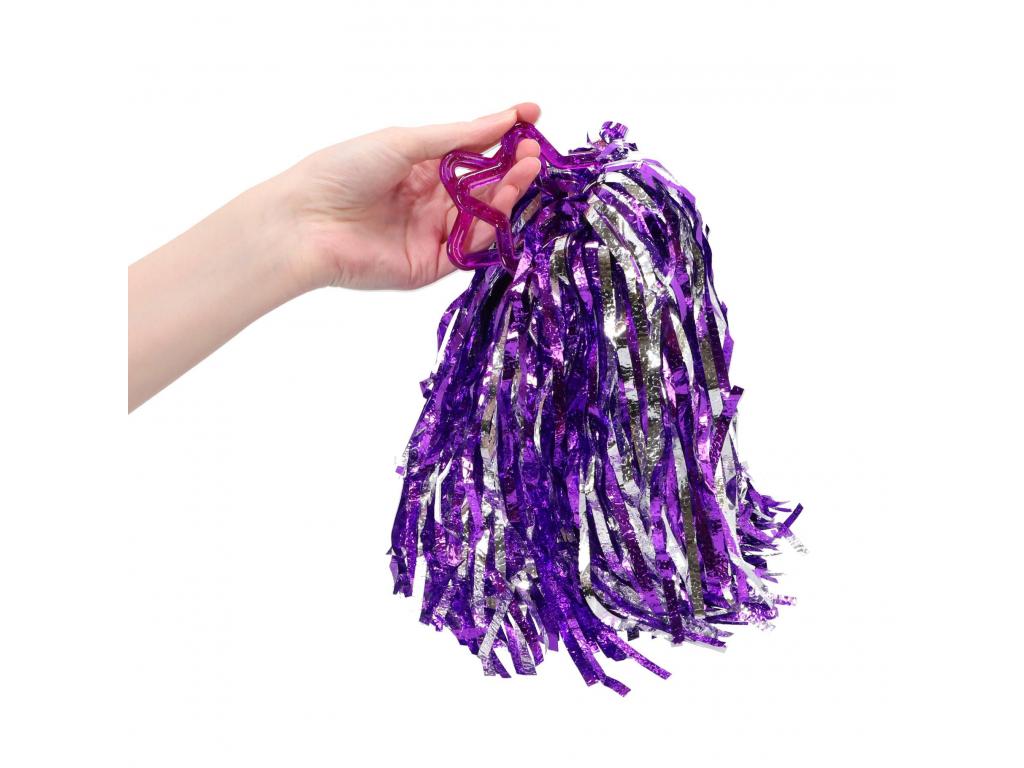 Két pompon, lila és ezüst színű, csillag alakú műanyag fogantyúval. 3 éves kortól alkalmas.