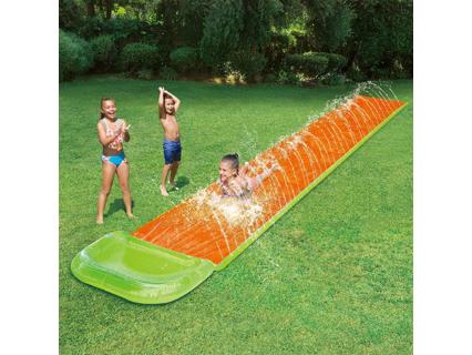 Hozz létre egy vízi paradicsomot a saját kertedben ezzel a vízi csúszdával. Tekerj ki egy megfelelő helyre a több mint 549 cm hosszú csúszdát. Rögzítsd és töltsd meg a kerti slaggal. Amint a víz átfolyik a csúszdán az oldalakon lévő szórófejekből, ideje csúszni. A csúszda 3 éves és annál idősebb gyermekek számára alkalmas.