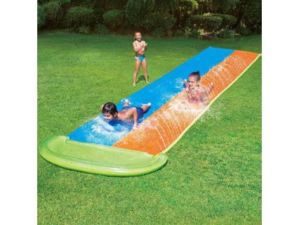 Hozz létre egy vízi paradicsomot ezzel a vízi csúszdával! Tekerd ki a több mint 549 cm hosszú csúszdát egy megfelelő helyre, hogy egy kis futás után csúszhass. Rögzítsd és töltsd meg a kerti slaggal. Amint a víz átfolyik a pályán az oldalakon lévő szórófejekből, ideje csúszni! A pálya elég széles ahhoz, hogy 2 személy csúszhasson rajta. A csúszda 3 éves és annál idősebb gyermekek számára alkalmas.