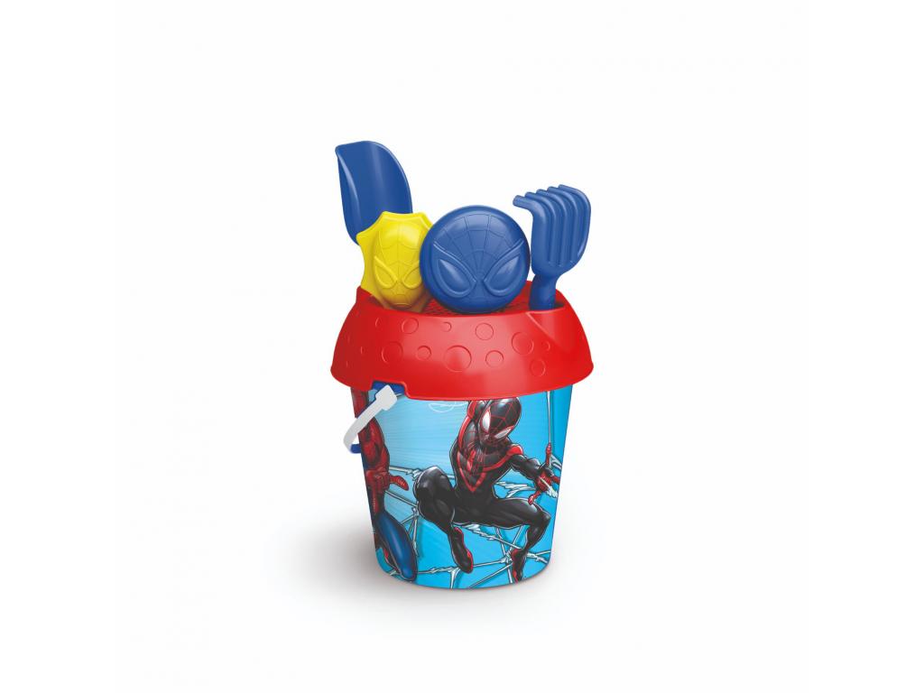 Pókember a strandra vagy a játszótérre is elkísér. A szett részei: 18 cm-es vödör, lapát, gerebly, 2 pókemberes homokozó minta.