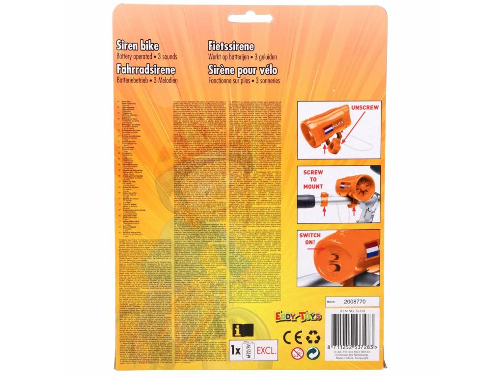 Kerékpár sziréna 3 különböző hanggal. Utánozd a rendőrségi szirénát. Elem (1 x 6F22 9V) nem tartozék. 5 éves kortól alkalmas.
