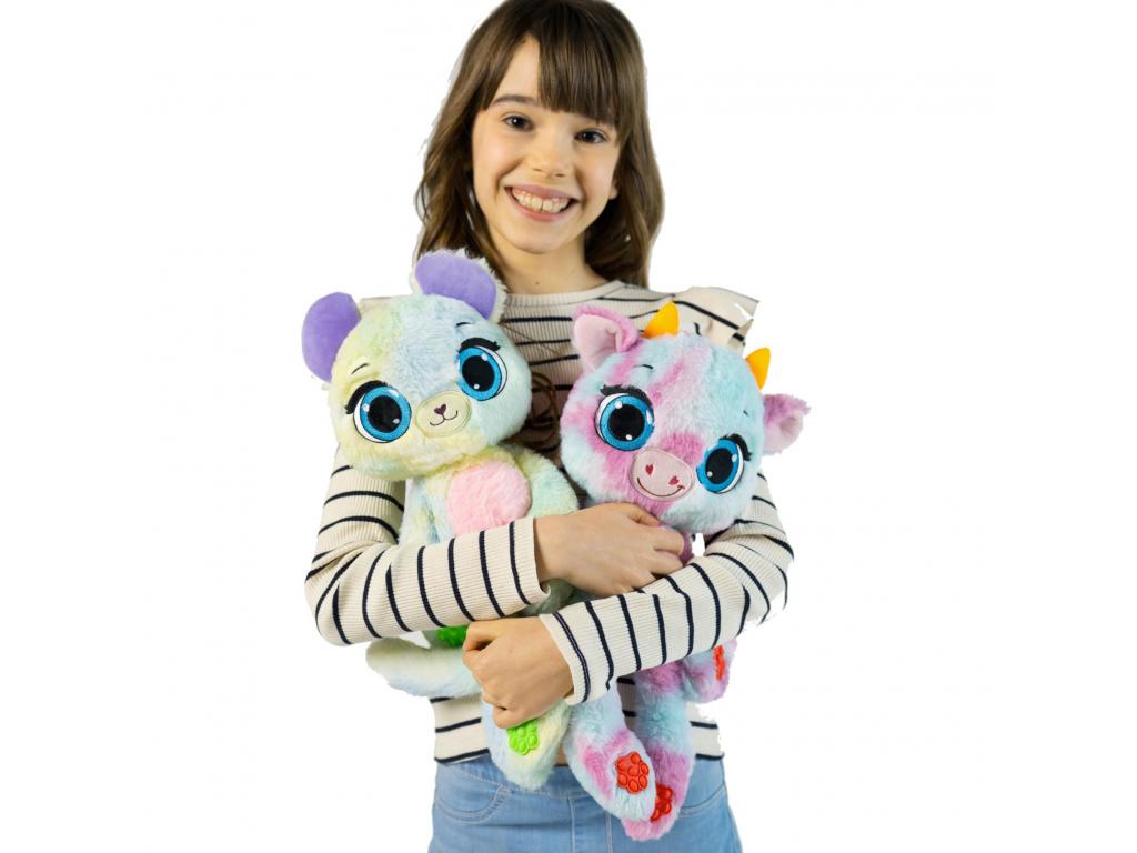 Élvezd az egyedülálló kicsomagolási élményt a BubblePops-szal! Nyisd ki a csomagot, és meg fogsz lepődni! Egy vidám színű plüssállat ugrik ki a csomagból, és ötszörösére nő! És szagold meg, milyen finom rágógumi illat árad belőle. Három különböző BubblePops plüssállat közül választhatsz: Raspberry Burst Unicorn, Strawberry Snuggle Bunny vagy Blackberry Bliss! Finom édes szeder, eper vagy málna illatuk van. A plüssállat pop-it kezekkel és lábakkal rendelkezik, ami nagyon kellemes tapintású! Az Unicorn plüssállat mérete: kb. 37 cm. Ajánlott életkor: 6 hónapos kortól. Többféle változatban kapható, szállítás véletlenszerűen. Az ár 1 db termékre vonatkozik.