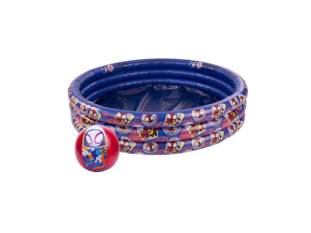 Pókemberes gyermek medence. Menő medence Spidey-ről és szuper barátairól, felfújható strandlabdával. A medence átmérője körülbelül 1 méter, 3 gyűrűvel rendelkezik. 3 éves kortól alkalmas.