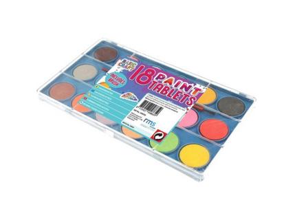 18 színű akvarellfesték-tábla. Funkció: 18 különböző színű akvarellfesték és ecset egy átlátszó fedeles festékkészletben. 3 éves kortól alkalmas.