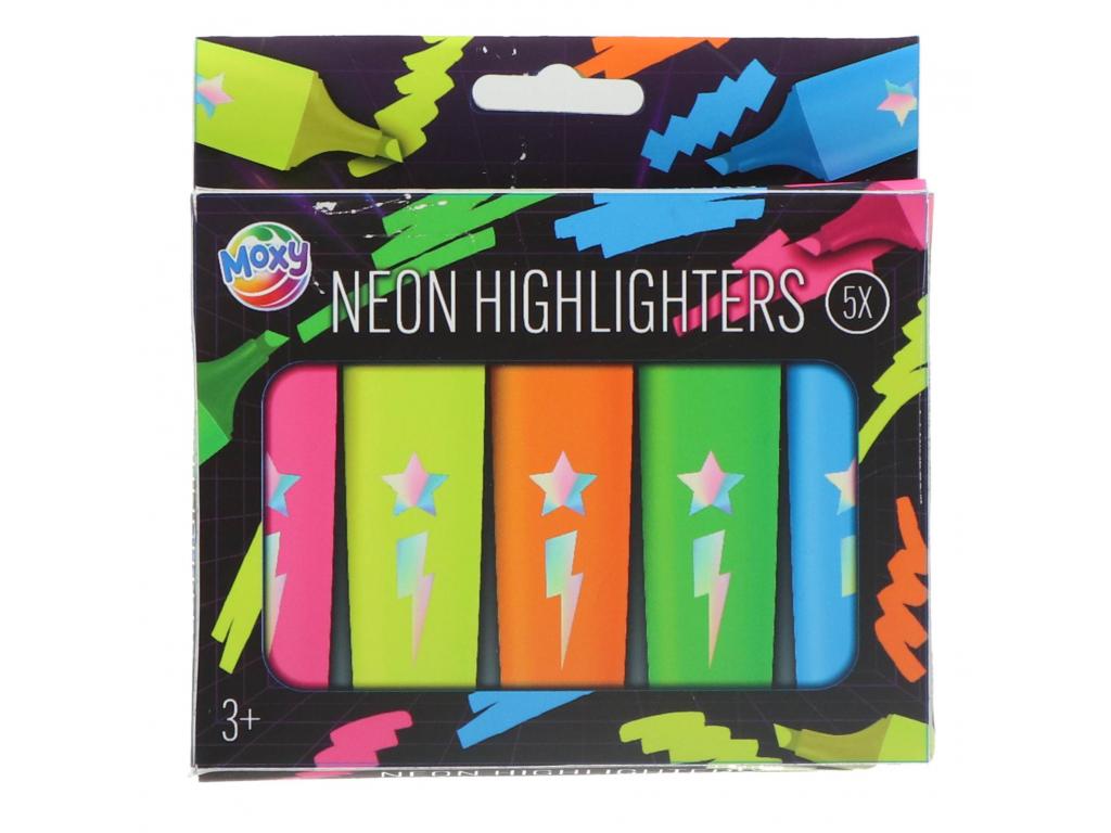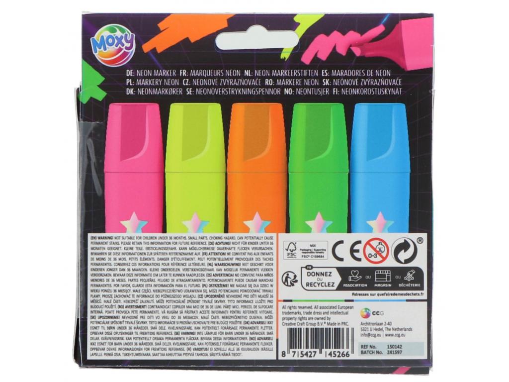 Ez az 5 darabos neon jelölőfilctoll-készlet feltűnő és színes jelöléseket biztosít! Ideális iskolai, munkahelyi vagy kreatív projektekhez. Kényelmes és 3 éves kortól alkalmas gyermekek számára. Adjon egy kis színt minden projektjéhez!