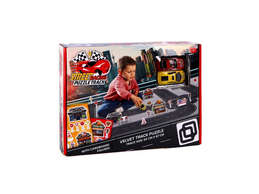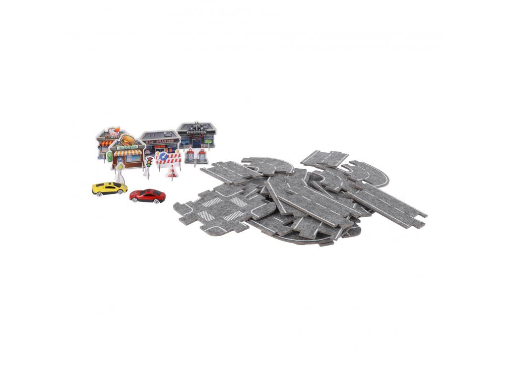 Utcai verseny puzle pálya autókkal, 22 darabos