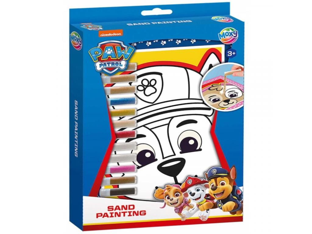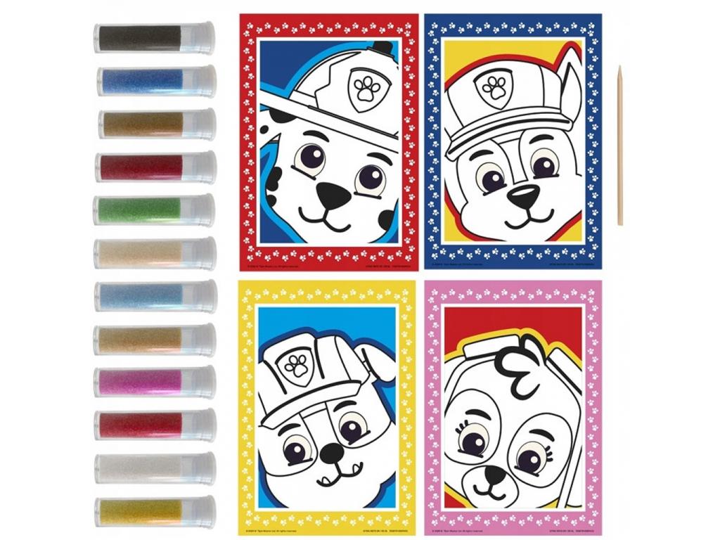 A szett 4 előre nyomtatott, öntapadós képet tartalmaz, amelyeken a Mancs Őrjárat legnépszerűbb szereplői például Chase, Skye vagy Marshall szerepelnek. A képeken lévő rétegeket egyesével eltávolítva, majd a megfelelő színű homokot rászórva szép, részletgazdag, csillogó képek készíthetők, amelyek akár a gyerekszoba falát is díszíthetik.