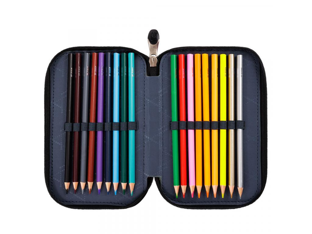 A tolltartó külseje egyedülálló, csillagködös mintával van díszítve, amely biztosan megragadja mindenki figyelmét. A cipzárak ergonomikusan kialakított fogantyúi könnyű használatot biztosítanak, így még a legkisebb kezek is könnyedén kezelhetik. A belső elrendezés számos rögzítővel és elválasztóval rendelkezik, hogy minden eszköz rendezetten és könnyen hozzáférhetően legyen tárolva.