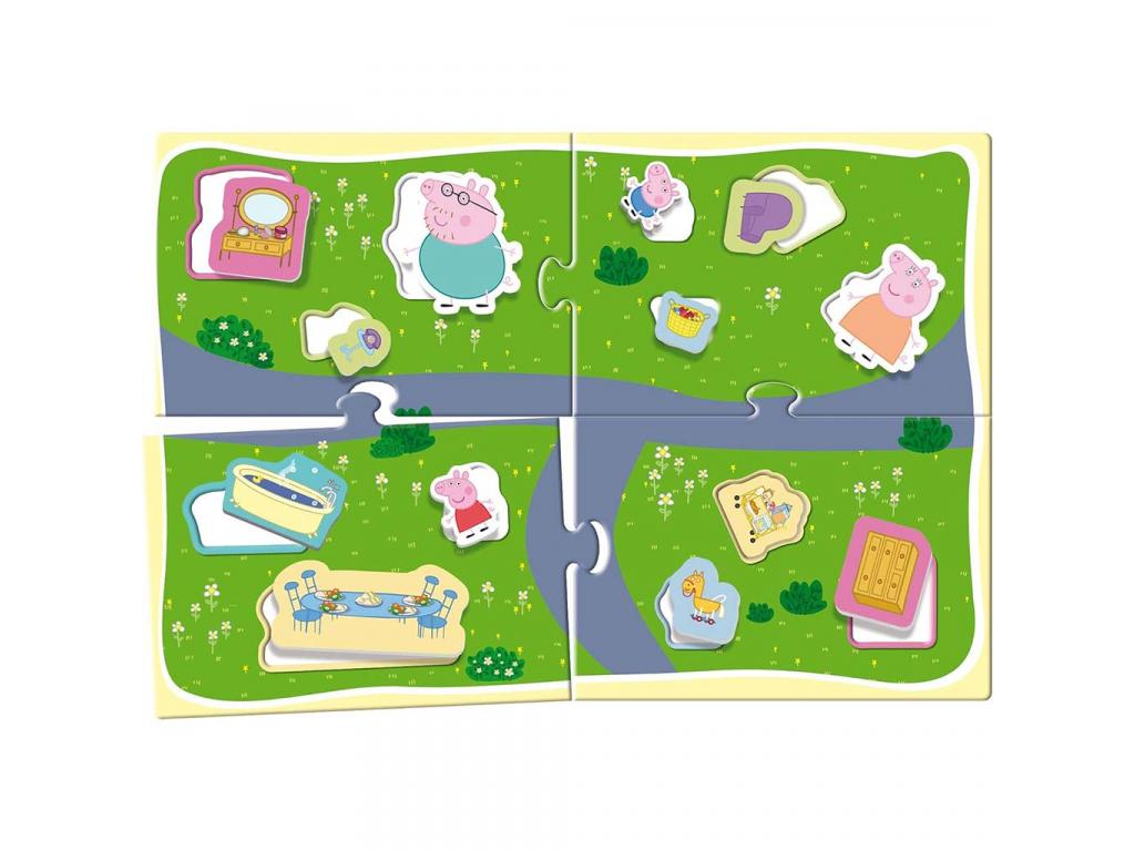 A Peppa malac oktató háza 3D tökéletes választás, ha szeretnéd játékosan megtanítani gyermekednek a rendrakás, rendszerezés és helyismeret alapjait. Ez a kedves, több szintes, térbeli babaház Peppa világa alapján készült, és játékosan segít felfedezni az otthon különböző helyiségeit és azok berendezéseit. A játék célja, hogy a gyerekek felismerjék, mely tárgy hová tartozik, így ösztönözve őket a logikus gondolkodásra és a figyelem fejlesztésére.