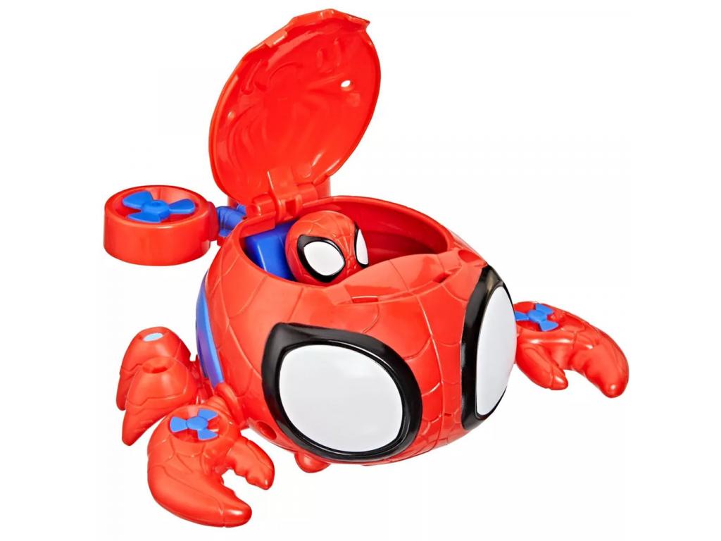 A Spider Crab jármű pilótafülkéje egy mozdulattal kinyitható, így Pókember könnyedén beültethető, hogy vízi küldetésekre induljon. A jármű propellerei mozgathatók, és a szemei hideg vízzel érintkezve megváltoztatják a színüket, így a játék mindig tartogat egy extra meglepetést. A mellékelt levehető hálós kiegészítő segítségével a figura harcra készen szállhat szembe a képzeletbeli ellenfelekkel.