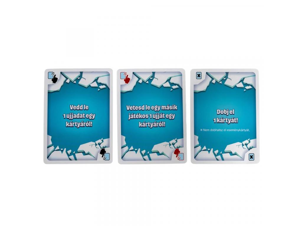 A különleges eseménykártyák tovább fokozzák a feszültséget: eltávolíthatod egy másik játékos ujját, eldobhatsz lapokat, vagy éppen új esélyt adhatsz magadnak. A gyors döntések, a meglepő fordulatok és a mókás helyzetek miatt a Pingvinparti tökéletes választás baráti társaságoknak vagy családi estékhez, főleg ha szeretitek a vicces, mégis ügyességet és gondolkodást igénylő játékokat.
