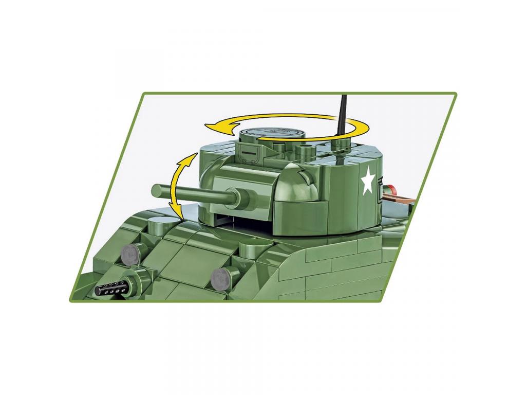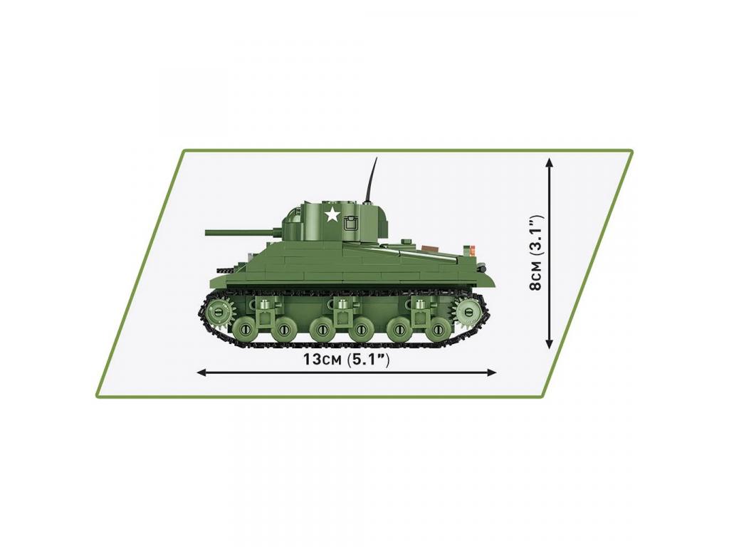 A COBI Sherman M4A1 építőkészlet a második világháború egyik legismertebb amerikai közepes harckocsijának részletgazdag modelljét kínálja. A Sherman tank a szövetséges erők egyik legnagyobb számban gyártott és legszélesebb körben bevetett járműve volt, amely döntő szerepet játszott Európa felszabadításában. A készlet 1:48 méretarányban építhető meg, és 312 darab kiváló minőségű építőelemből áll, amelyekből egy masszív, valósághű harckocsi-modell építhető. A modell hossza 16 cm, szélessége 7 cm, magassága 8 cm, így arányaiban is tökéletesen visszaadja az eredeti jármű formáit.