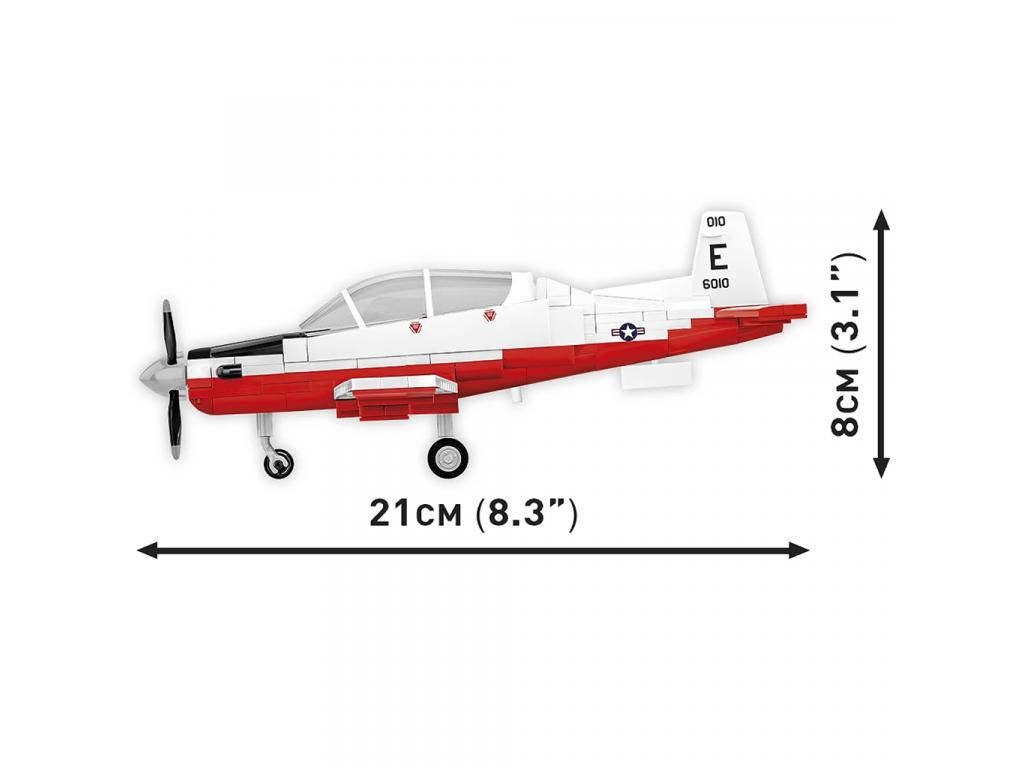 Ez a COBI építőkészlet a Beechcraft T-6 Texan II modern gyakorló repülőgép modelljét idézi meg, amelyet több ország légierője is használ pilóták kiképzésére. A modell különleges piros-fehér színkombinációban készült, amely elegánsan kiemeli a repülőgép jellegzetes formáját. A készlet 1:48 méretarányban építhető meg, összesen 197 darab magas minőségű építőelemből. A valósághű arányokat követő kialakítás és a részletes kidolgozás révén a modell méretei: hossza 21 cm, szárnyfesztávolsága 21,5 cm, magassága 8 cm.