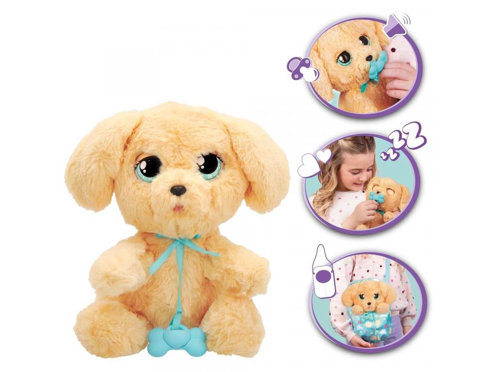 A játék különlegessége, hogy a kék csont alakú cumija segítségével a kutyus megnyugtatható. Ha a cumit a szájába helyezik, a kiskutya édes, alvó hangokat ad ki, mintha tényleg elaludna. Ha elveszik tőle, reagál rá, ezzel bátorítva a gyerekeket az érzelmi odafigyelésre és a gondoskodásra. A puha takaróval ellátott csomagolás már önmagában is egy kis ágyikót formáz, ami még szerethetőbbé és valósághűbbé teszi az élményt.