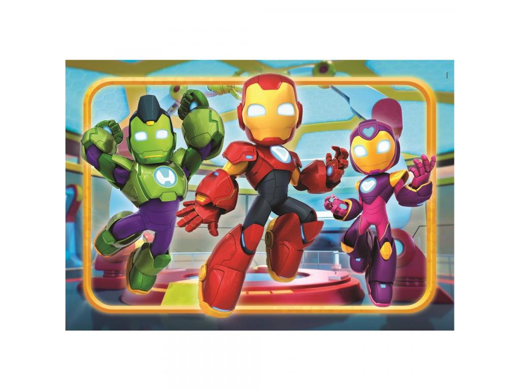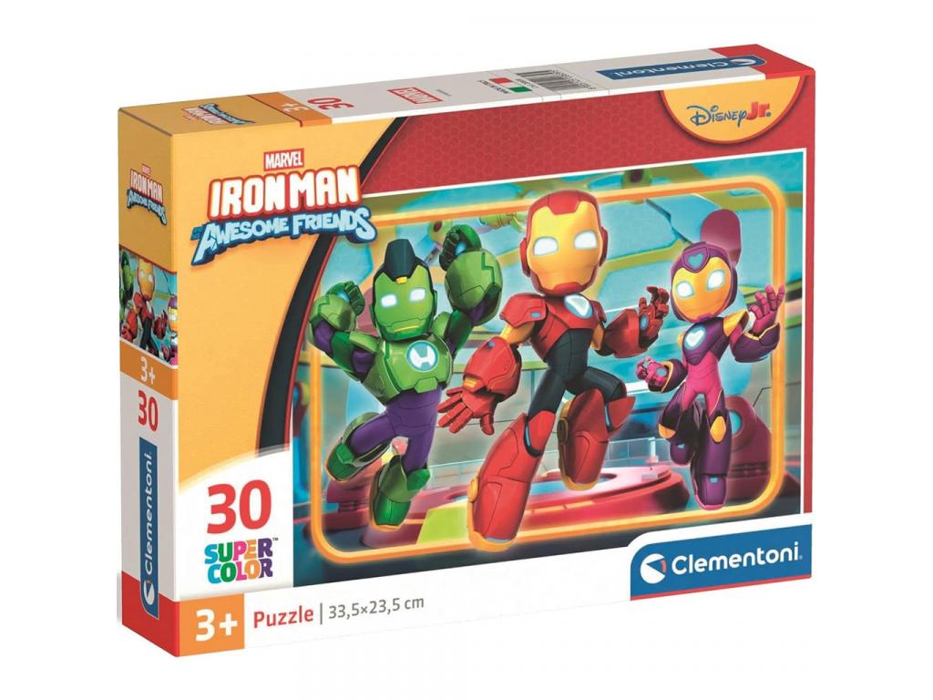 Ha a gyereked imádja a Marvel szuperhősöket, akkor ez a Clementoni által készített, 30 darabos Vasember csodálatos barátai puzzle igazi telitalálat lesz számára! A Disney Junior animációs sorozatának kedvelt karakterei Vasember, Hulk és Rescue most egy látványos kirakón kelnek életre, ami szórakoztatja a kicsiket, miközben fejleszti a kézügyességüket, logikai gondolkodásukat és türelmüket.