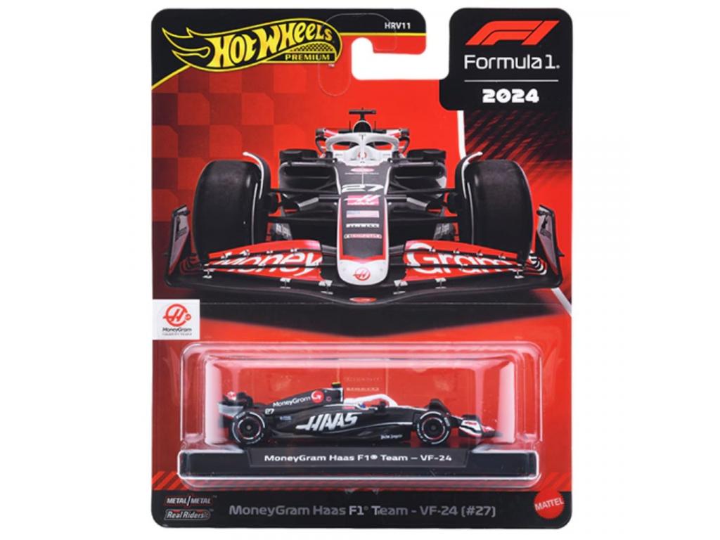 A Hot Wheels Formula 1: MoneyGram Haas VF-24 (#27) kisautó 1/64 - Mattel leírása: