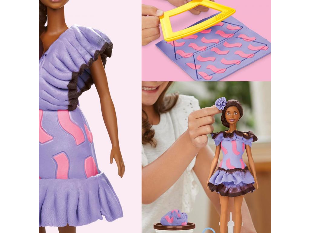 A Play-Doh: Barbie Fashionista fodros ruhák gyurma szett babával - Hasbro leírása: