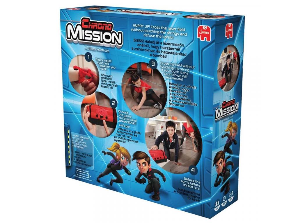 Készülj fel egy akciódús kalandra, ahol a gyorsaság, ügyesség és koncentráció mind számít! A Chrono Mission: A titkos küldetés egy izgalmas mozgásos társasjáték, amely során a gyerekek igazi titkos ügynökökké válhatnak. A feladatuk: átszivárogni a lézeres biztonsági mezőn anélkül, hogy hozzáérnének a zsinórokhoz, és hatástalanítani a bombát, mielőtt lejár az idő. Mindezt otthon, egy izgalmas küldetés hangulatában!