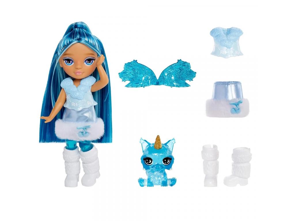 Sapphire stílusa igazán egyedi: hosszú, élénk kék haja, ragyogó tündérruhája és bundás csizmái egy igazi téli tündérre emlékeztetnek. A készletben minden megtalálható, ami a varázslatos játékhoz kell: levehető, csillogó szárnyak, trendi ruhadarabok, és nem utolsó sorban egy különleges kisállat, egy kristályszerű unikornis-sárkány keverék, aki színben és stílusban is tökéletesen illik a babához.