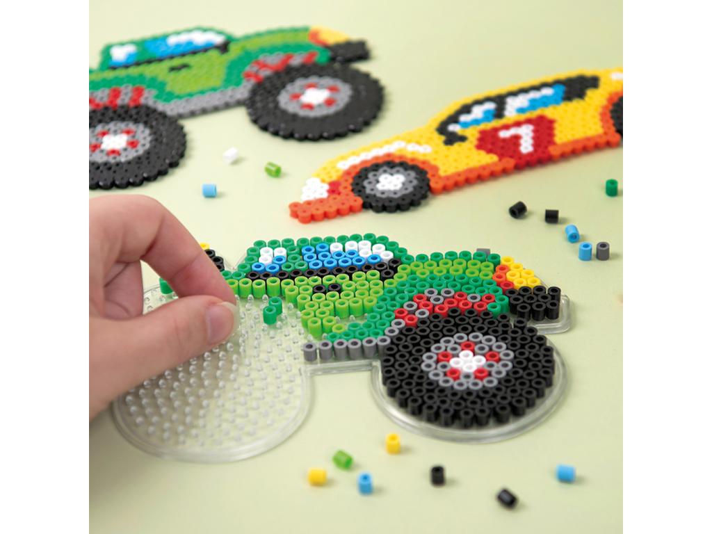 A gyöngyök kirakása fejleszti a koncentrációt, kézügyességet és a színfelismerést, miközben a gyerekek szórakozva tanulnak. A sablonlapokra könnyedén elhelyezhetők a gyöngyök, majd egy felnőtt segítségével vasalással rögzíthetők, így tartós, kemény járműfigurák készülnek, amiket akár ajándékozni, akár dekorációnak használni is lehet.