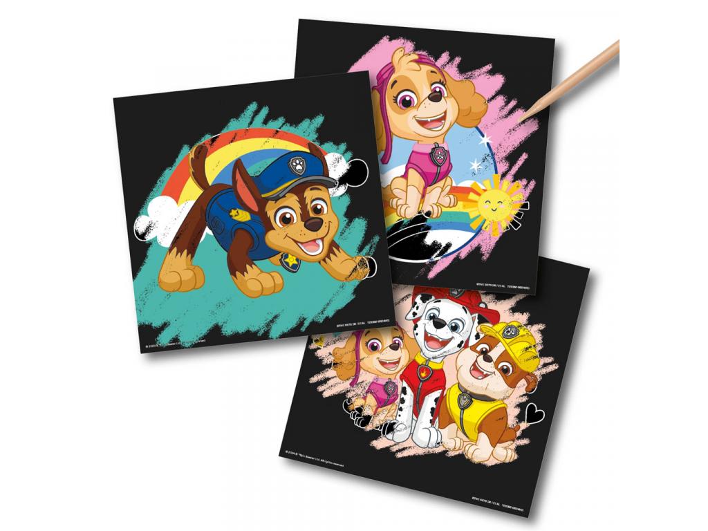 A Mancs Őrjárat képkaparó készítő kreatív szett tökéletes választás minden kisgyereknek, aki szeret alkotni, színezni és természetesen rajong a bátor kutyusok kalandjaiért! Ez a különleges kreatív szett 6 darab előrajzolt, fekete felületű képet tartalmaz, amelyeket a mellékelt fa pálcával lehet "kaparni", hogy előbukkanjanak alóluk a színes, vidám minták.
