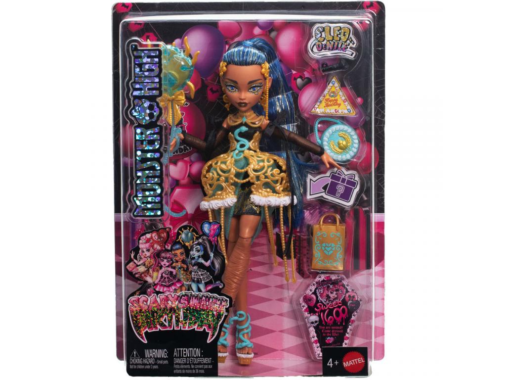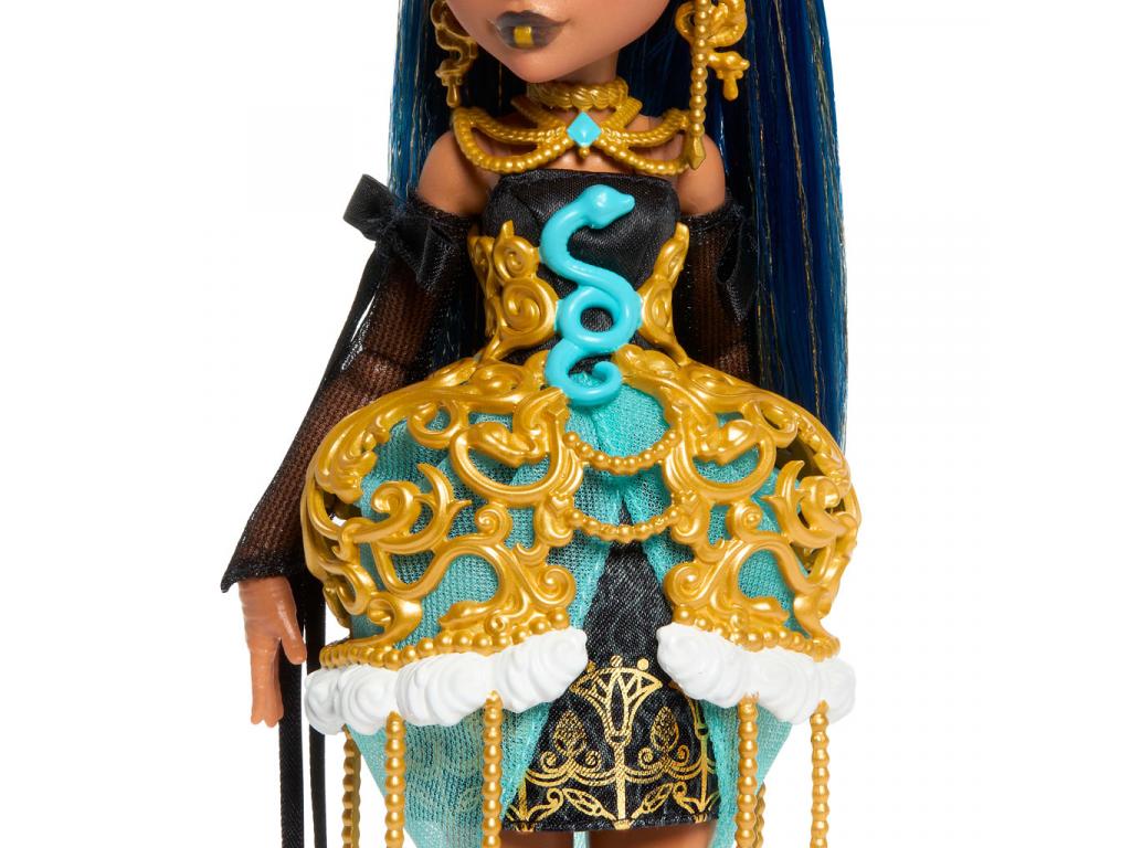 A Monster High diákjai készen állnak a legkísértetiesebb bulira, hiszen Draculaura 1600. születésnapját ünneplik! Cleo De Nile természetesen nem maradhat ki a mókából sőt, ő maga a bulikirálynő ebben a lenyűgöző szettben, ami méltó egy egyiptomi hercegnőhöz.