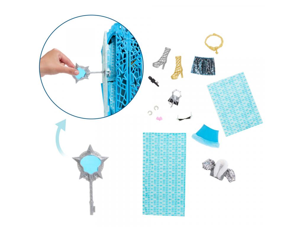 A mellékelt varázslatos nagyítókulccsal a gyerekek felfedezhetik Hauntlywood térképét, és nyomokat keresve kinyithatják a különleges ajtókat, hogy feltáruljanak a meglepetések. Több mint 19 kiegészítő lapul a szekrényben: csillogó ruhák, menő cipők, kesztyűk, ékszerek és egyedi stílusú darabok, amelyekkel Frankie több mint 125 féle megjelenést ölthet!