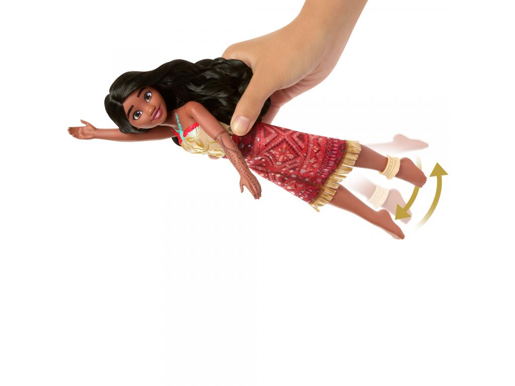 Vaiana filmes öltözéke hűen visszaadja az animációs film stílusát: gyönyörű, piros mintás szoknyát, kék gyöngy nyakláncot, bokadíszt és különleges, színváltós felsőt visel, ami meleg víz hatására varázslatosan átváltozik így a játék minden alkalommal meglepetéssel szolgál. A baba hosszú, hullámos haja pedig tökéletes terepet nyújt a fésüléshez és hajformázáshoz, így a kicsik kreativitása még tovább szárnyalhat.