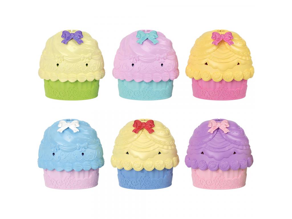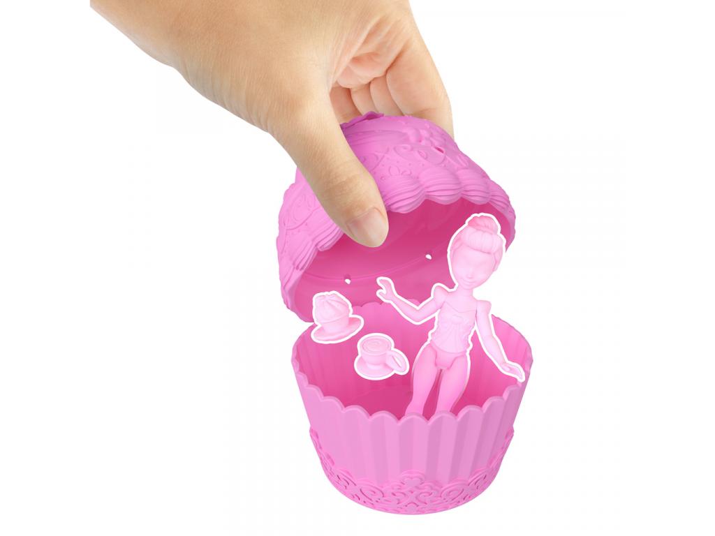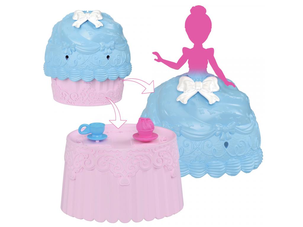 Amint a gyerekek felnyitják a muffint, előbukkan belőle a meglepetés figura egy igazi Disney hercegnő (pl. Belle, Ariel, Hamupipőke vagy más ismert karakter), akit a muffin krémje egy pillanat alatt gyönyörű szoknyává varázsol. A süti alsó része pedig kis asztalként funkcionál, így tökéletes helyszín egy mini teadélutánhoz. A dobozban 2 kiegészítő is található, például egy csésze vagy sütemény, amit a gyerekek a baba kezébe is adhatnak.